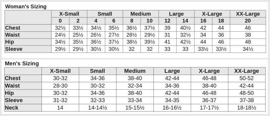 Примерна таблица с размери